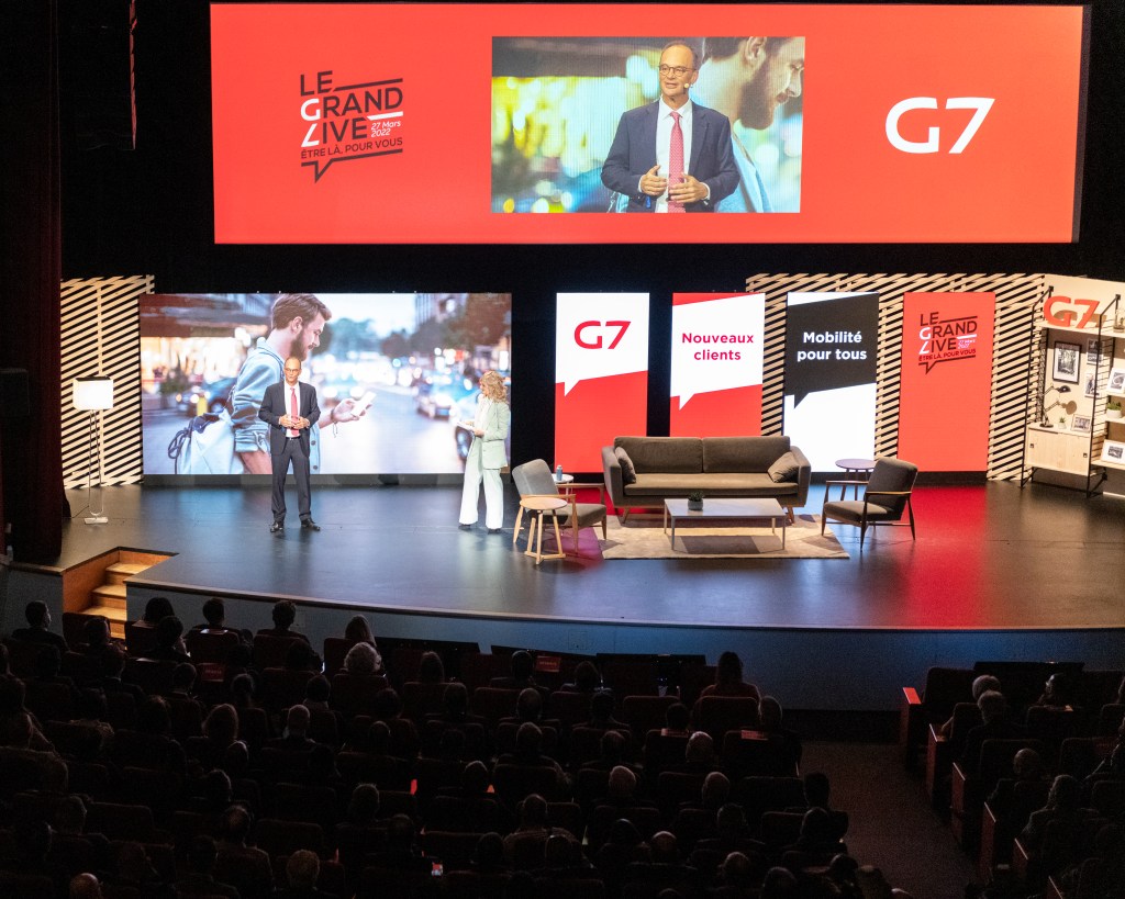 Le 27 mars dernier, chauffeurs, partenaires et équipes ont été invités par G7 au Palais des Congrès de Paris pour partager la quatrième édition du « Grand live G7 ». Après deux ans de contraintes sanitaires interdisant toute réunion d’ampleur, la communauté G7 a témoigné de son engagement dans la réussite du taxi en relevant les défis de la pandémie, de ses conséquences économiques, de l’adaptation de l’activité à la transition énergétique et en réaffirmant la place du taxi dans la ville de demain.