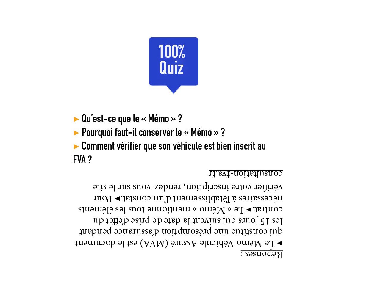 L’automobiliste n’a aucune démarche à faire. Dès le contrat d’assurance souscrit, le FVA est alimenté par les assureurs de manière obligatoire et automatisée. Ces derniers ont 72 heures pour déclarer un véhicule assuré par leurs soins. Afin de combler ce délai, le législateur a imposé un nouveau document appelé Mémo Véhicule Assuré (MVA), plus communément appelé « mémo ». Ce document constitue une présomption d’assurance pendant les 15 jours qui suivent la date de prise d’effet du contrat. Toutefois, ce mémo étant valable pour toute la durée du contrat, il est primordial de le conserver car il mentionne les coordonnées précises de votre assureur et votre numéro de contrat, éléments nécessaires à l’établissement d’un constat. Dès lors, en cas de contrôle, et si votre véhicule n’a pas encore été enregistré, vous pouvez présenter ce mémo. Au-delà de 15 jours, votre véhicule devra obligatoirement être inscrit au FVA.
